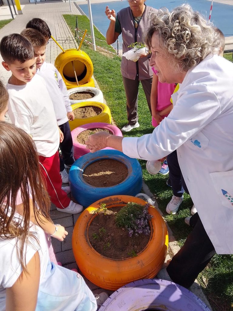 No âmbito do desenvolvimento sustentável, as escolas do 1.° Ciclo do Agrupamento de Escolas de Vila Flor, construíram, em articulação com os Encarregados de Educação, uma lagarta com pneus usados.